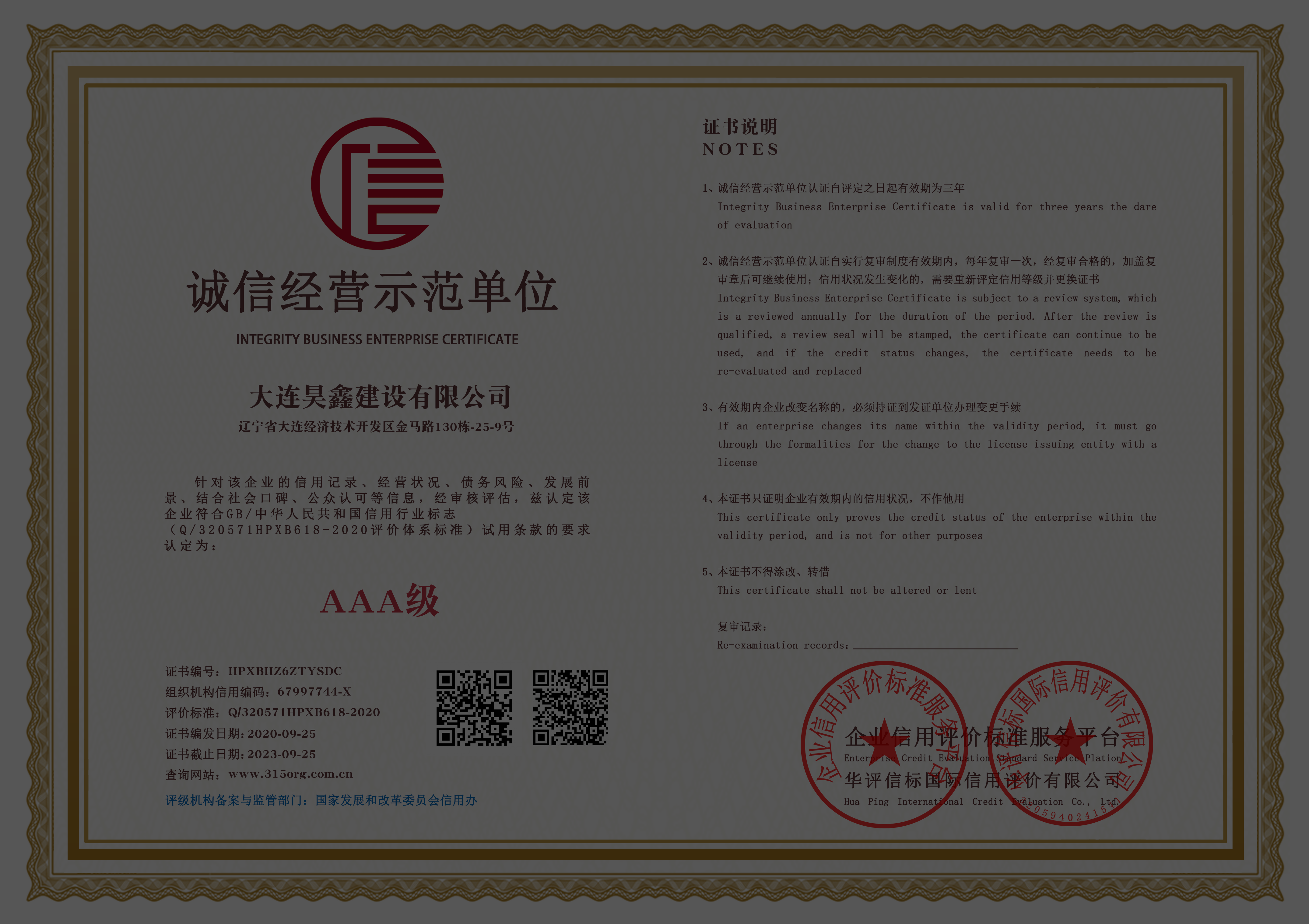 AAA企業(yè)信用等級